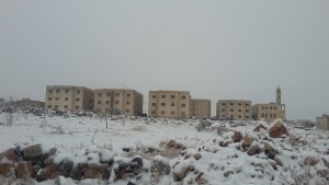 هذا المشروع الذي أزال هموم الدنيا عن كاهل جمال وغيره العشرات بل المئات، يتحدث عنه مديره محمد الهاجر (45 عاماً) وهو أحد أعضاء جمعية الهدى الخيرية في كفرنبل. ويقول الهاجر “بدأنا هذا المشروع قبل سنتين تقريبا، وهو مأهول بالسكان النازحين منذ بداية عام 2014”. ويهدف المشروع بحسب الهاجر إلى تأمين مأوى للنازحين الذين يزداد عددهم يوماً بعد يوم، مع استمرار الحرب والقصف، مقارنة بقلة المنازل في المناطق التي تعتبر أقل خطراً من غيرها. ويلفت الهاجر إلى أن “هناك مشروع سكني في كفرنبل، وآخر في قرية معرزيتة، وكل مشروع يتألف من ستة أبنية، كل بناء يحوي 8 شقق، الشقة الواحدة تتألف من غرفة ومنافعها، وبعضها من غرفتين ومنافعها. يتم توزيعها بحسب عدد أفراد العائلة النازحة. وهناك مسجد خاص بكل مشروع سكني”. ويشير الهاجر إلى أن المشروع السكني في معرزيتة على وشك الانتهاء بعد أن قاموا مؤخرا بتجهيزه بالتمديدات الصحية والكهربائية والبلاط والسيراميك وكل ما يلزم. ويقول الهاجر أن الطيران الروسي استهدف المشروع مؤخراً وتحديداً في 25 كانون الأول/ ديسمبر 2015، ولكنه لم يصبه، ولم يتضرر البناء حامدا آلله على ذلك.