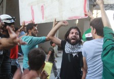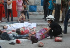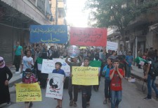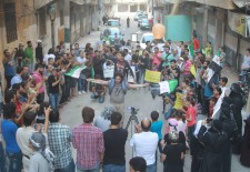 In eastern Aleppo, a demonstrators took part in a march from the Salah al-Din neighbourhood through Mashhad and finishing in eastern Ansari. Student participations held up signs calling for a return to the values upheld at the outset of the 2011 revolution, and for the unification of the Free Syrian Army. Others denounced the shelling of Syrian refugee camps in the Lebanese town of Arsal, following clashes between Lebanon’s army and Syrian fighters who had come over the border.
