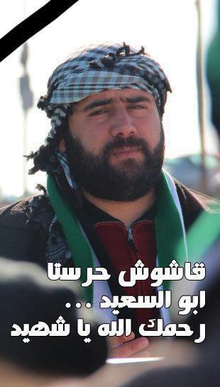 “كان لدى قوات الأمن مشكلة مع البراد في بيت أبو سعيد.. كلما داهموا منزله خلعوا باب البراد.. مرة، مرتين، ثلاثة، حتى أصبحنا نطمئن منه عن باب براد بيته في كل اقتحام قبل السؤال عن أهله وعائلته”.. يروي الناشط محمود مدلل، أبو مرشد،.. صديقه الأقرب في الثورة.. وقيادة المظاهرات والملاحقات.. والمداهمات.. والأغاني.. ومن شاركه كتابة كلمات أغنية: