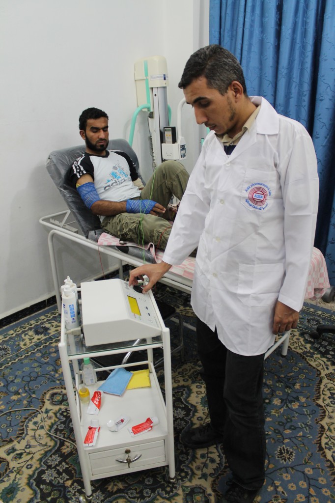 The centre managed by Sleiman al-Hayess has modest equipment. Sophisticated medical equipment is not available in Deir El-Zor, which is under siege by government forces.