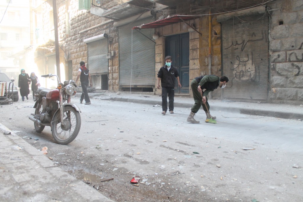 Residents in the Salah al-Din neighbourhood have formed local relief organizations for emergency situations, despite an acute shortage of equipment. October 10, 2013.